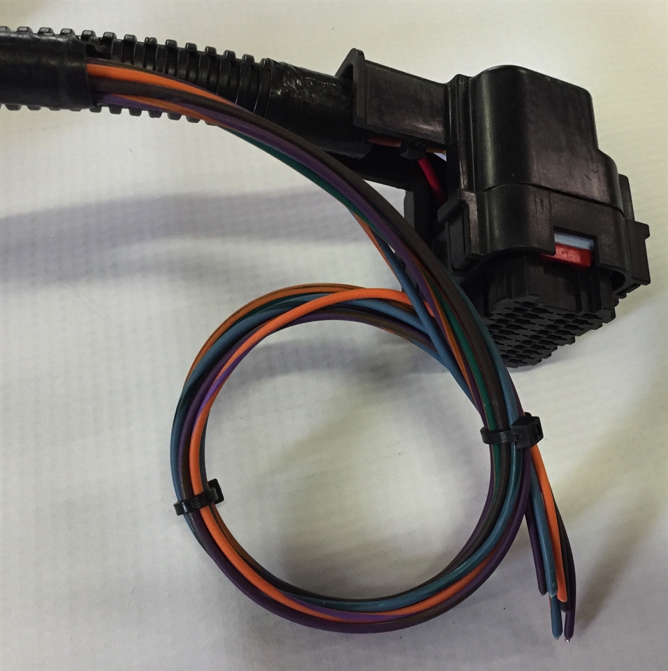Our harness integrates the Jeep and GM side harnesses into one single harness. The engine harness routes directly to the ECU with a factory plug at the factory firewall connector. The bulk of the harness routes behind the engine and under the fuel rails which is visually appealing and allows for factory engine covers to be used. Our under dash harness incorporates the GM accelerator pedal, ALDL, GM fuses-Relays and EZ CanBus module all while plugging directly into the main harness.